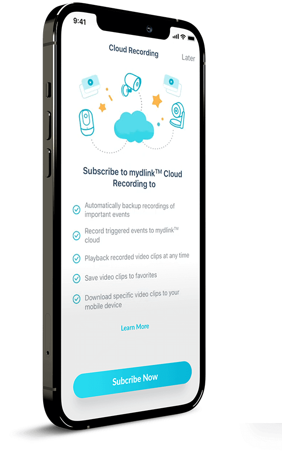 With a mydlink™ Cloud recording subscription, you can have peace of mind that your video recordings are saved automatically to the secure cloud server, so intruders won’t be able to steal footage.