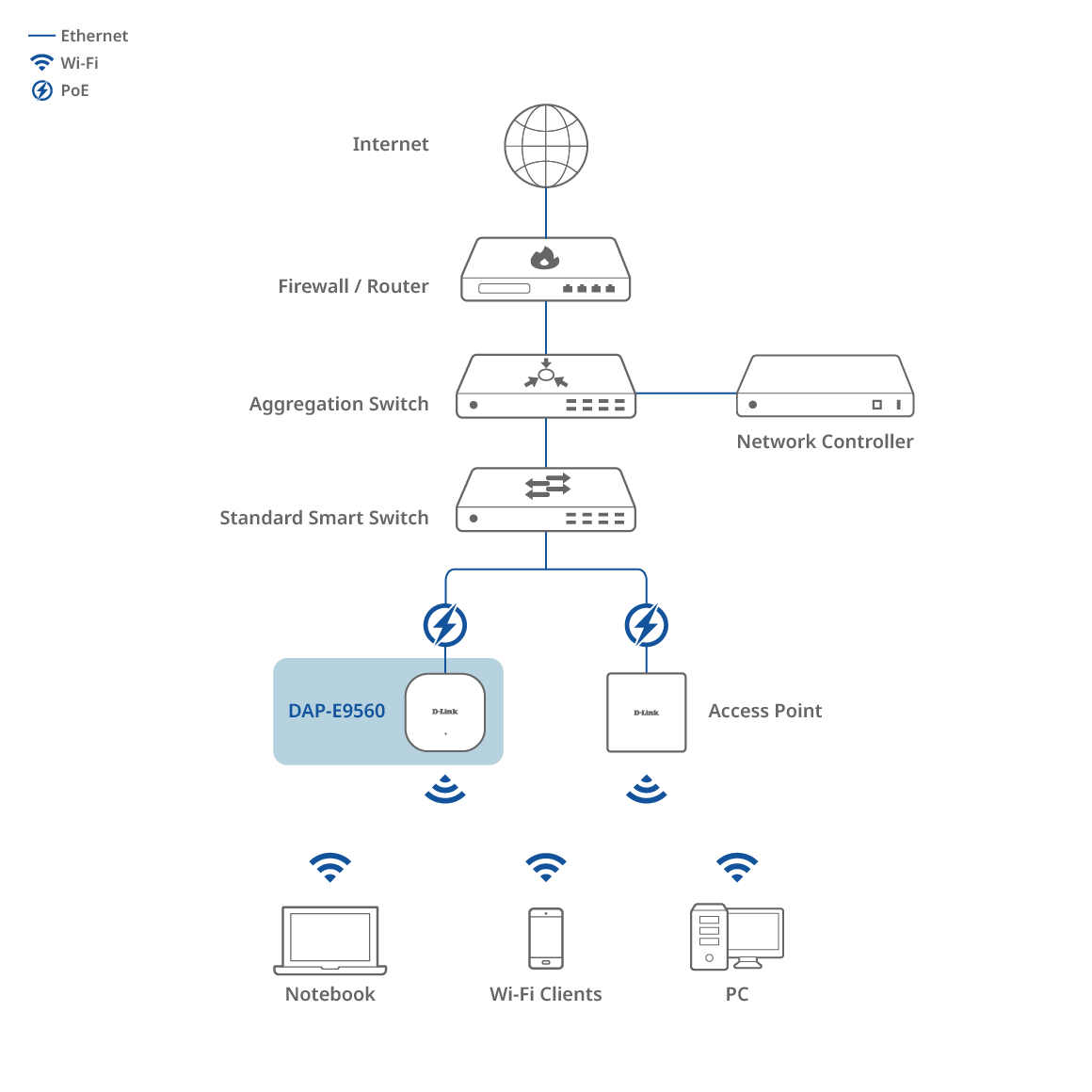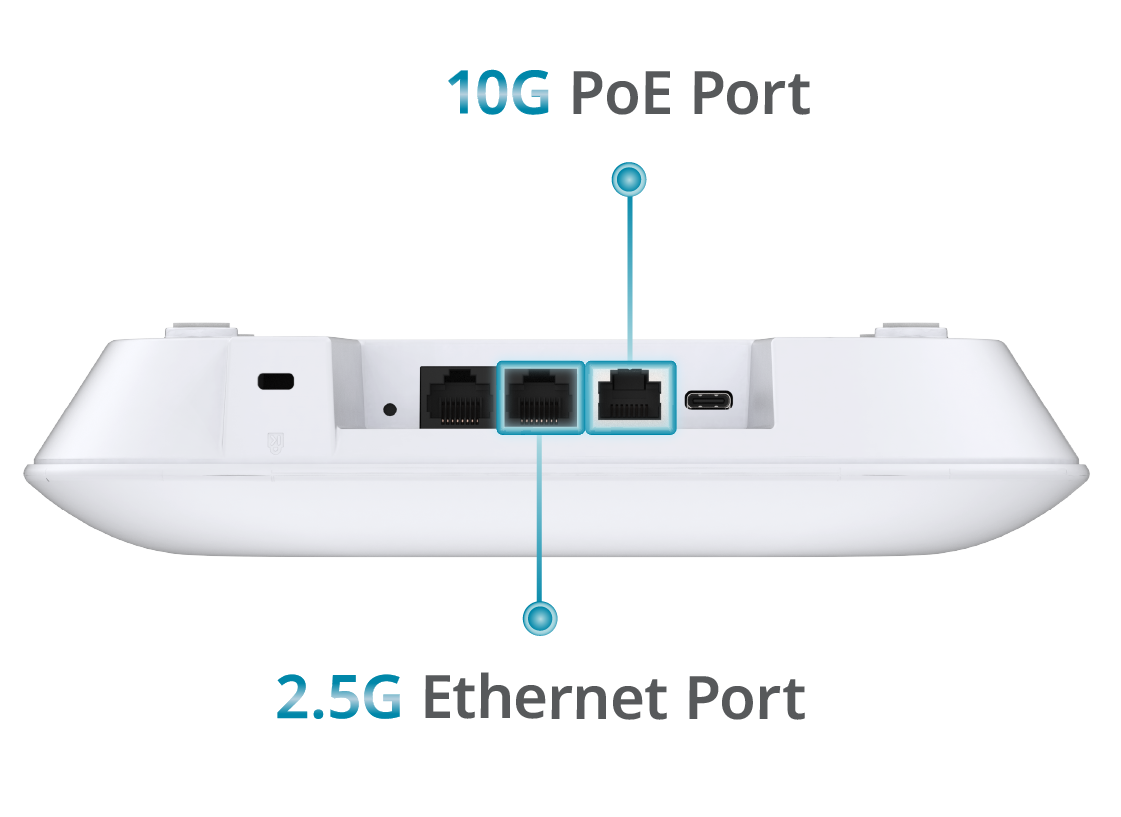 Équipé d’un port Ethernet 10G PoE haut débit et d’un port Ethernet 2,5G supplémentaire, le DAP-E9560 garantit un backhaul filaire exceptionnel et des options de liaison montante flexibles. This advanced design maximizes wired throughput for demanding enterprise environments, fully unleashing the ultra-fast potential of Wi-Fi 7 and supporting high-density, high-performance deployments.