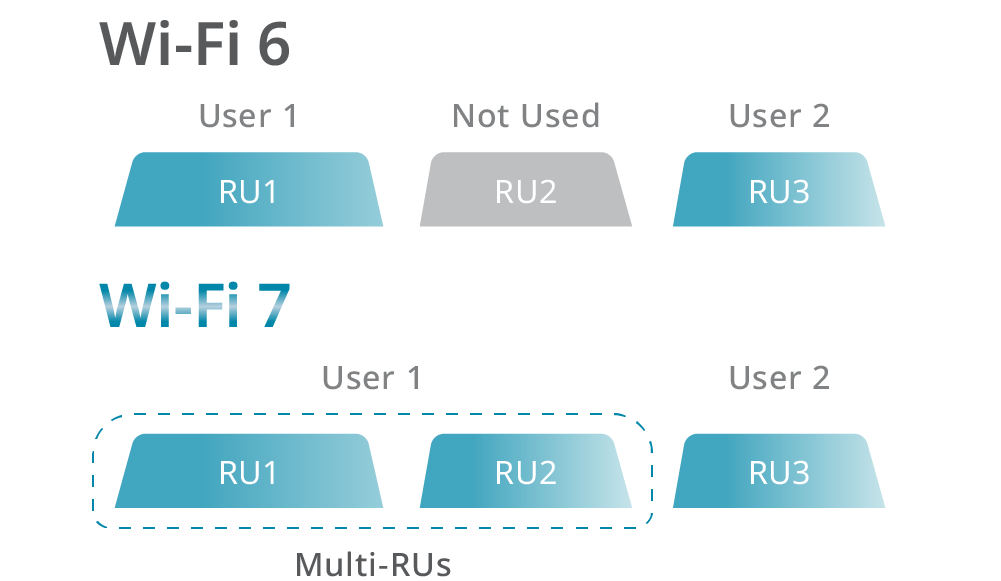 Multi-RUs et Puncturing – La largeur de bande du canal peut être utilisée plus efficacement