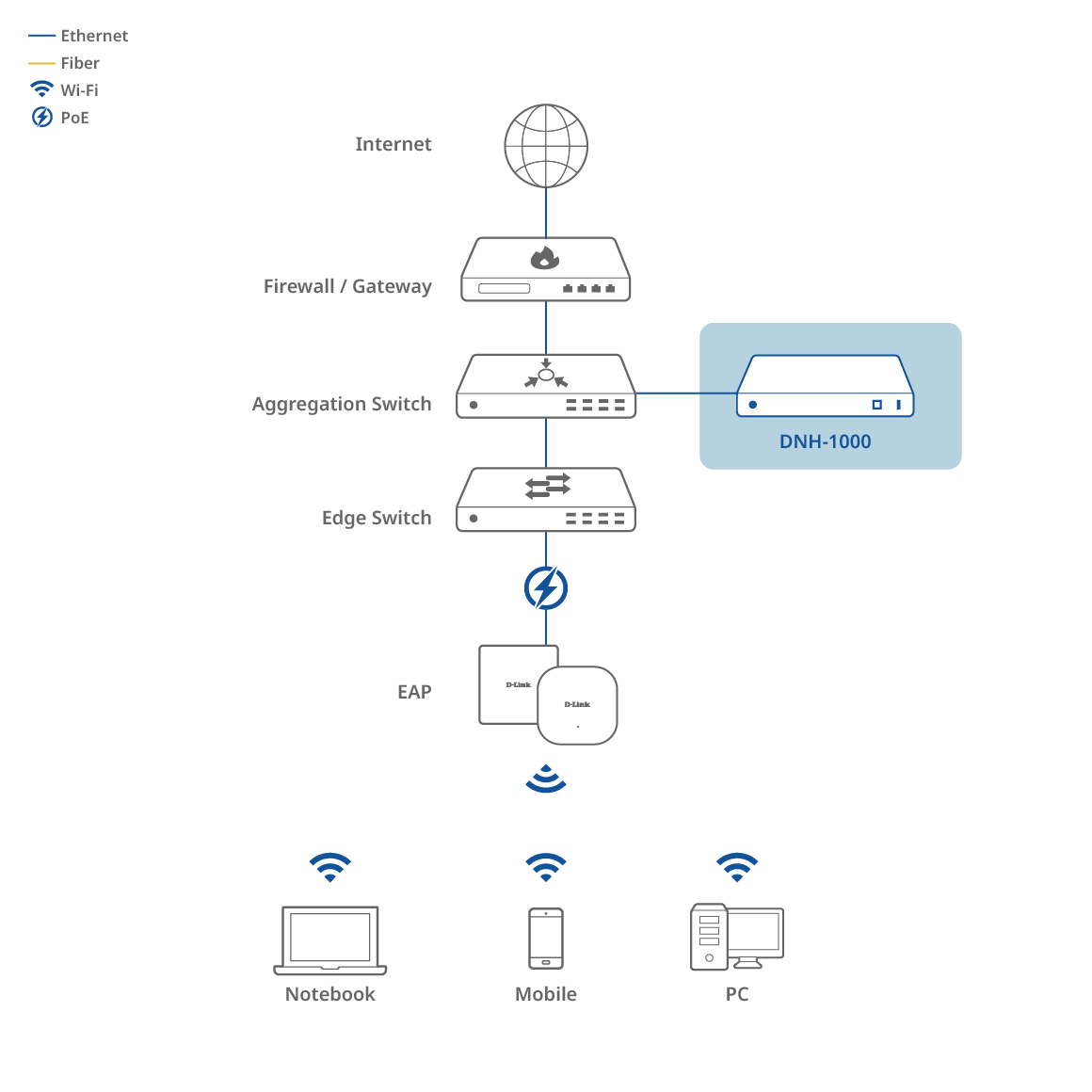Avec la série de contrôleurs réseau DNH Nuclias, vous pouvez facilement centraliser la gestion des points d’accès et des switches de D-Link, offrant une surveillance centralisée plus pratique et basée sur une interface graphique.