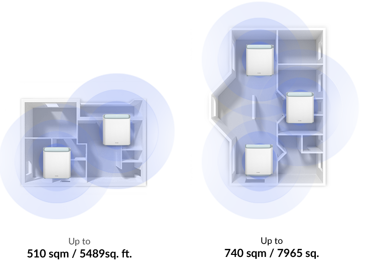 - Pack de 2/Pack de 3 pour une couverture Wi-Fi allant jusqu’à 510 m²/740 m²