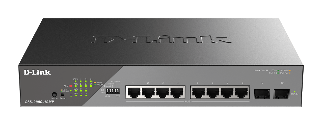 Vestavěný DIP přepínač umožňuje snadnou konfiguraci a rychlou úpravu nastavení produktu bez nutnosti přístupu do webové konfigurace. Během okamžiku povolíte nebo zakážete funkce, jako je QoS, Extend (prodloužení připojení až o 250 metrů), Izolace portů, PD-Alive a STP (Spanning Tree Protocol).