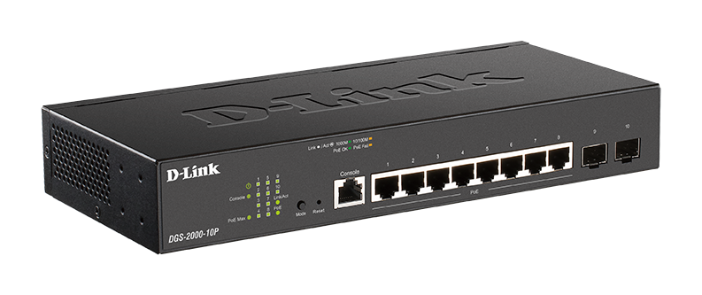The DGS-2000 Series includes a wide range of port density and media types, from 10 to 52 ports, including Gigabit copper, fibre and combo ports. All PoE switches within the series support PoE+ and provide high power budgets of up to 370W, allowing more PoE devices to be connected and powered.
