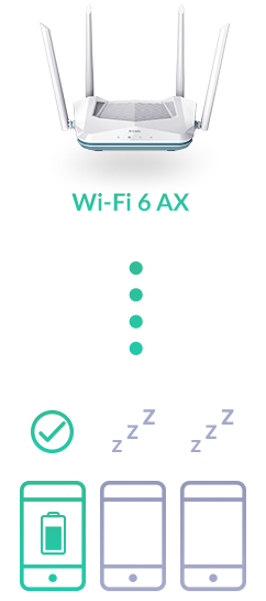 A Target Wake Time (TWT) funkció automatikusan csökkenti a csatlakoztatott eszközök energiafogyasztását azáltal, hogy meghatározza, mikor és milyen gyakran szükséges az adatátvitel. Így a TWT energiát takarít meg, és hozzájárul az eszközök akkumulátorának hosszabb élettartamához.
