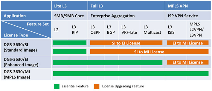 - High port densities, switch stacking, and easy management make the DGS-3630 Series suitable for a variety of applications