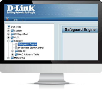 The D-Link Safeguard Engine increases the switch’s reliability, serviceability, and availability by preventing malicious flooding traffic caused by worms or virus attacks.