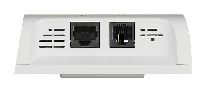 Wall-plate mount and discreet design to convert an Ethernet wall socket into an access point. Includes an RJ11 phone line port.