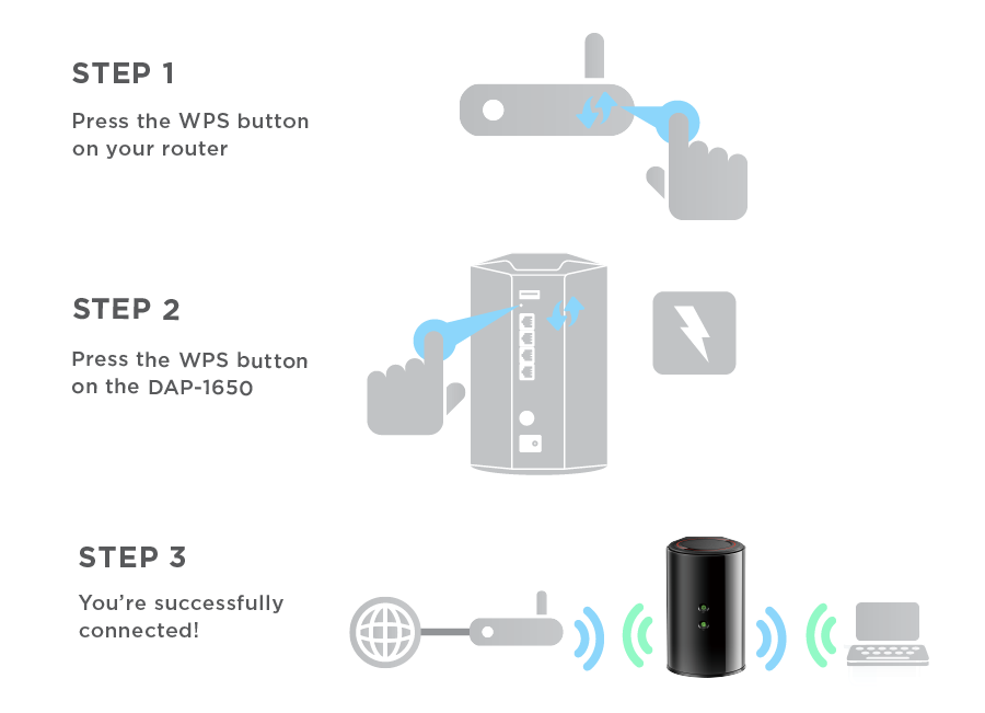 Simply push the WPS push button on the router or AP you want to extend and on the DAP-1650. It will automatically configure itself for you. You can also use the QRS Mobile app on your iOS or Android mobile device or the built-in setup wizard that lets you configure it wireless with a PC using any supported browser.
