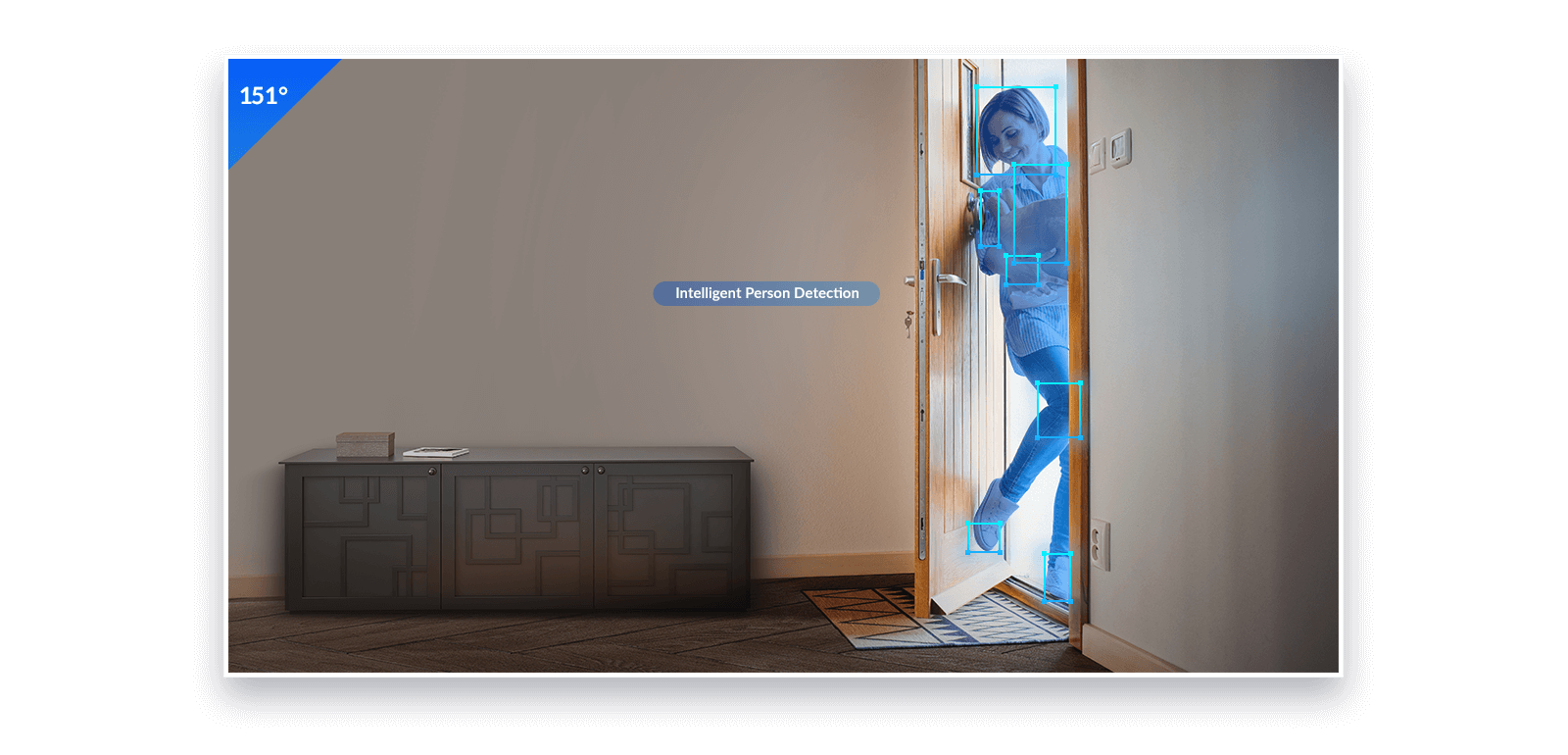 Vi har också utvecklat ett AI-baserat persondetekteringsläge som skiljer mellan människor och andra rörliga föremål, så att du bara får larm när en person går in i ditt hem — och inga falsklarm som t.ex. insekter eller ändrade ljusförhållanden.
