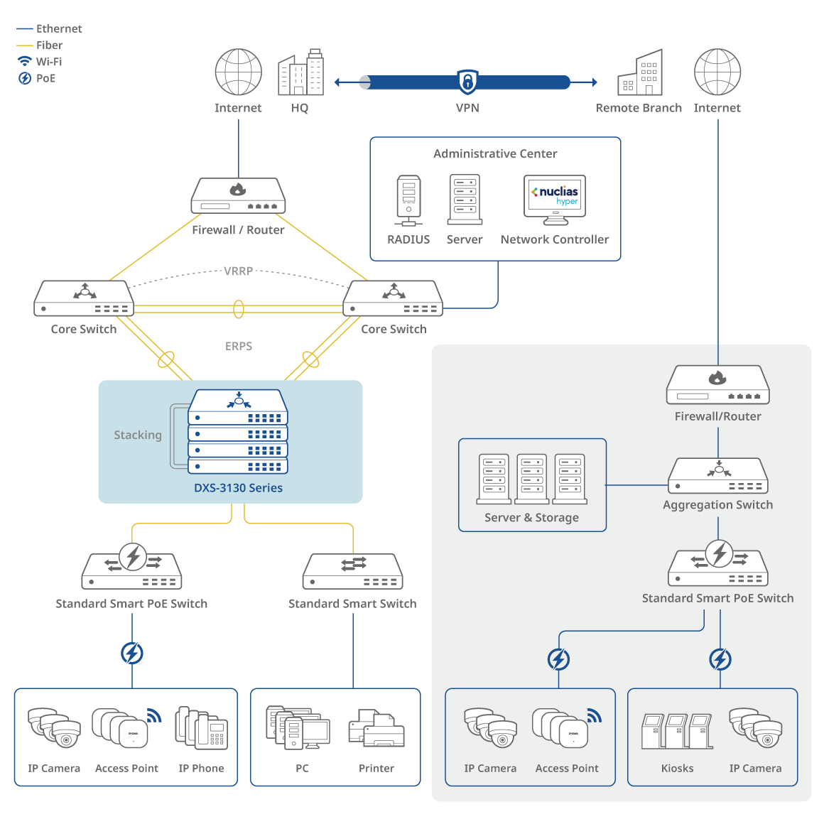 Stödjer mångsidiga funktioner från VRRP, ERPS, STP och fysisk stackning för att förbättra nätverkets motståndskraft