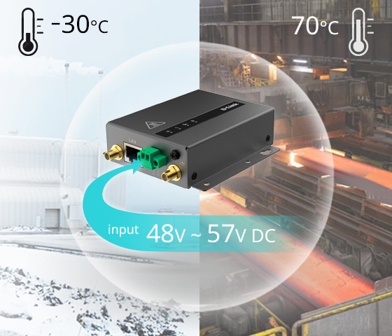 The DWM-311-GP is also engineered to safely accept wide input voltage(VDC 48~57V) fluctuations, providing more flexibility and convenience when selecting a suitable power source, making your M2M installations significantly more reliable and much easier to deploy.
