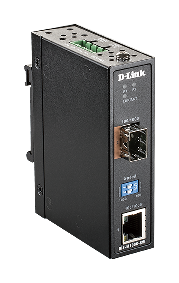 The Industrial 10/100/1000Base-T to SFP Media Converter turns an Ethernet connection into fibre, enabling ultra-fast long-distance connections. The DIS-M100G-SW media converter is housed in a highly-resistant IP30-rated metal casing to protect the media converter from harsh environmental conditions. Meanwhile, the fanless design extends the lifespan of the DIS-M100G-SW while also being able to operate in a wide industrial temperature range from -40°C up to 70 °C. For increased flexibility, the DIS-M100G-SW can be mounted on a DIN rail or conveniently mounted on a solid surface wall. In addition, the DIS-M100G-SW supports dual power input for a redundant power supply configuration to make sure the media converter continues to operate in the event of a primary power supply failure.