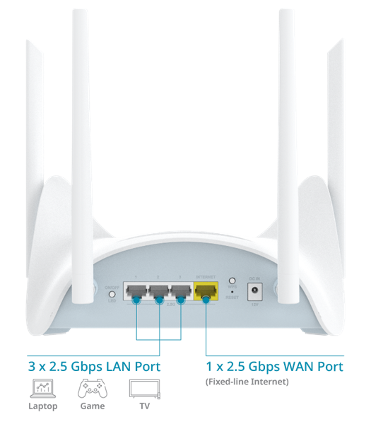 • Gigabit Connectivity: A 2.5-Gigabit WAN port and 3 x 2.5-Gigabit LAN ports