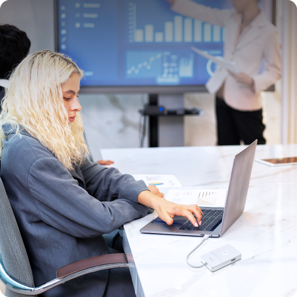 Le DUP-501 combine trois ports USB-C, un port USB-A, une sortie HDMI et un bouton de commutation HDMI sans fil dans un seul appareil élégant. Conçu comme un hub tout-en-un, il simplifie la connectivité et optimise l’efficacité au travail pour un confort absolu.