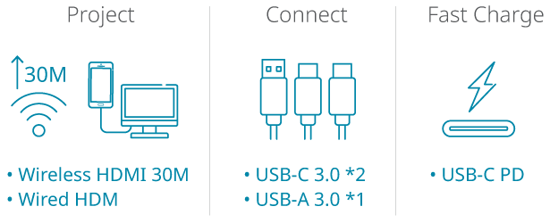 - Élargissez vos possibilités : : Connectivité 5-en-1 avec affichage sans fil en un seul clic pour une flexibilité ultime