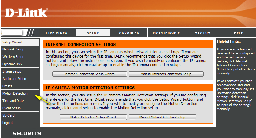 Step 4: Click Motion Detection on the menu at the left-hand side of the page.