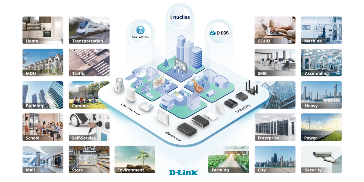 D-Link biedt een uitgebreid portfolio van netwerkproducten en -oplossingen en brengt het concept