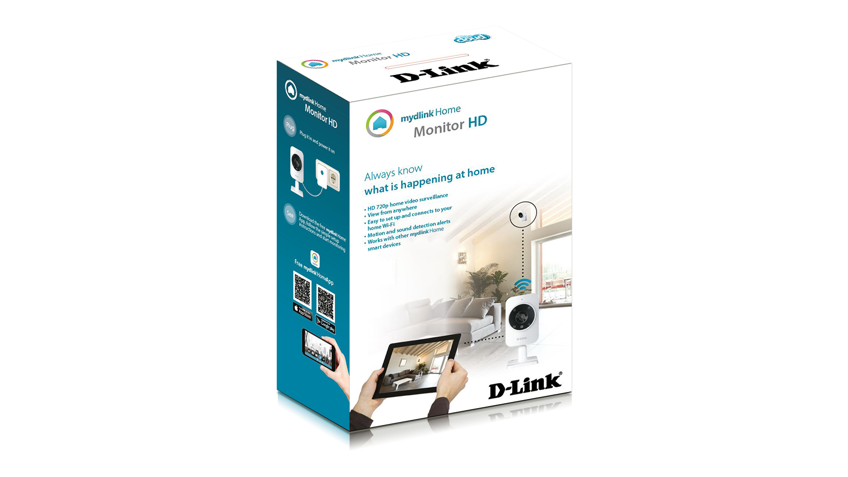 Gebruik de mydlink™ Home app* op uw tablet of smartphone om te zien wat uw Monitor HD ziet - waar u ook bent.