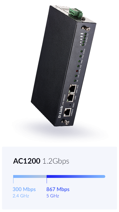 De DIS‑2650AP levert betrouwbare, supersnelle WirelessAC Wave 2-prestaties met maximale gecombineerde draadloze signaalsnelheden tot 1200 Mbps1, met 2 Gigabit LAN-poorten voor krachtige backhaul naar het bedrade netwerk