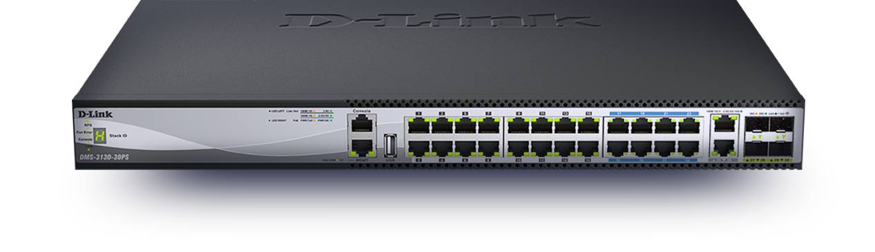 4x 25G SFP28 uplink-poorten, physical stacking voor redundancy en ingebouwde G.8032 Ethernet Ring Protection Switching (ERPS) om hersteltijden tot 50 ms te minimaliseren. Een USB 2.0-interface voor het opslaan van config-bestanden, boot-images en syslog. Ondersteuning voor een extra externe redundante voeding op alle modellen om een maximale uptime te garanderen. De DMS-3130-30PS ondersteunt zelfs de PoE PD-functie op de MGMT-poort, waardoor hij kan worden gevoed via een PoE-switch.