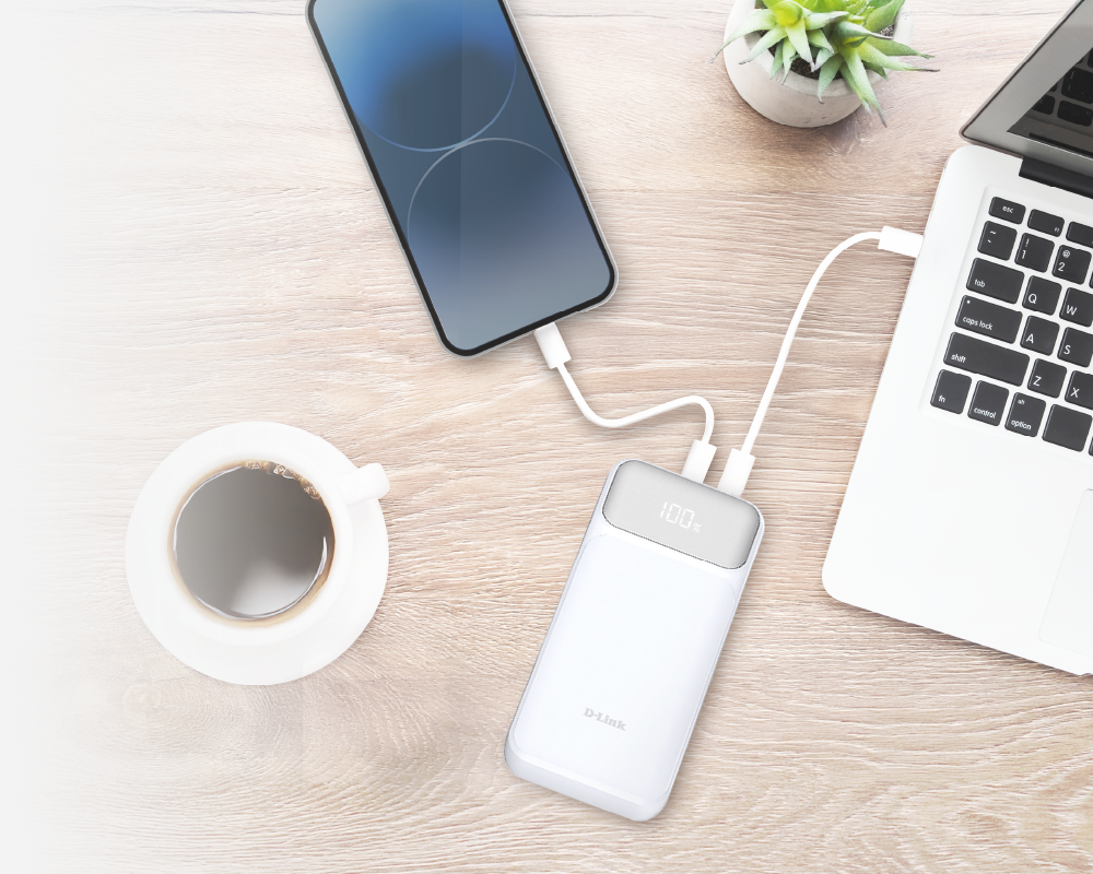 De D-Link 20000mAh Power Bank DPP-201 biedt 65W fast charging voor apparaten zoals laptops en smartphones. Met zijn hoge capaciteit laadt hij 5 keer een iPhone X of 3 keer een iPad mini op*. Het ontwerp met 3 poorten ondersteunt gelijktijdig opladen, terwijl veiligheidsvoorzieningen zorgen voor veilige, efficiënte stroomvoorziening, altijd en overal.