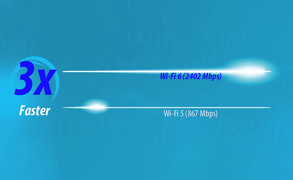1 Maximum wireless signal rate derived from IEEE standard 802.11ax/ac/n/g/b specifications. Actual data throughput will vary. Network conditions and environmental factors, including volume of network traffic, building materials and construction, and network overhead, lower actual data throughput rate. Environmental factors may adversely affect wireless signal range.