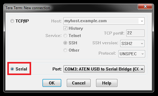 Click to select “Serial” - (In our example, we have used COM3) – Check your environment to what COM port is used.