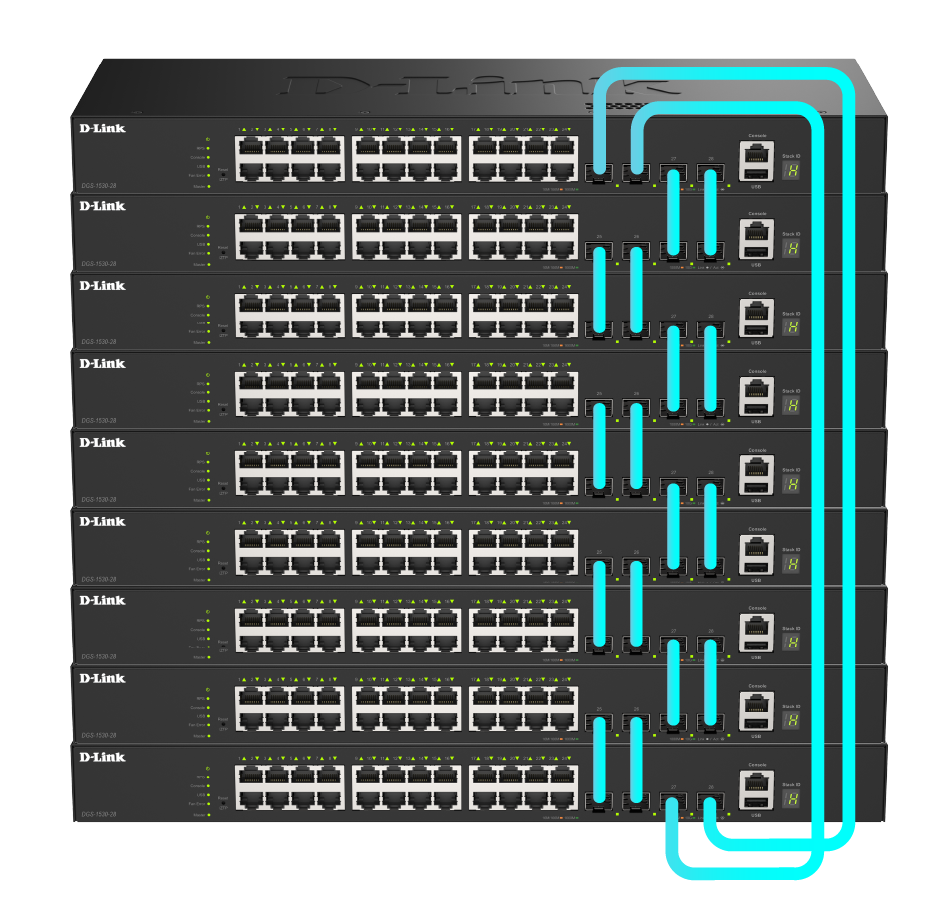 Physical stacking lets multiple switches act as one, boosting scalability and resilience. It reroutes traffic automatically during failures, supports hot-swapping, and ensures seamless master switch failover. Shortest-path forwarding and trunked ports enhance bandwidth and reliability.