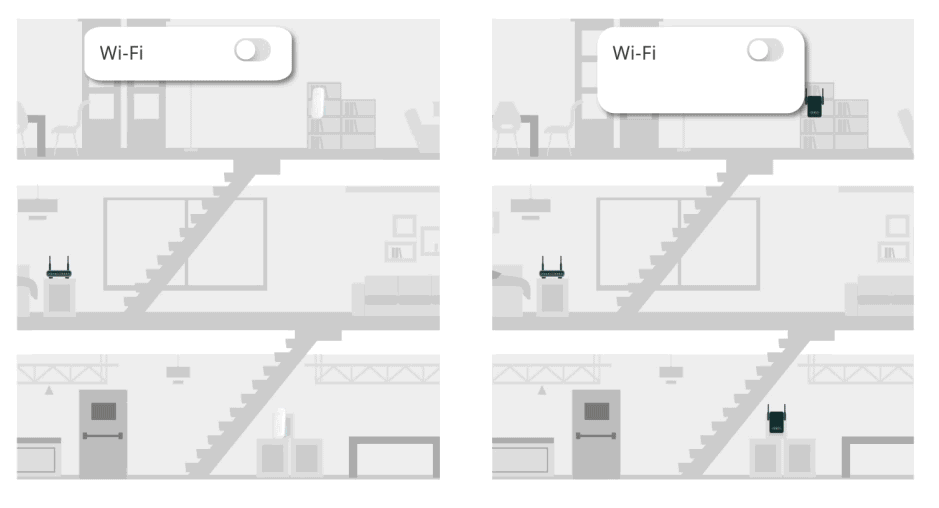 - Režim AP: Pro lepší výkon použijte gigabitový ethernetový backhaul k připojení extenderu k routeru.