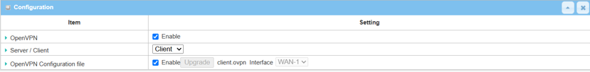OpenVPN Configuration File Click the Enable box to activate the configuration upgrade for OpenVPN client