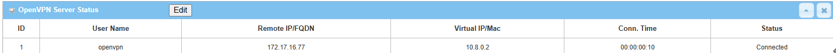 The OpenVPN Client Status will display the status of client connected to the OpenVPN server.