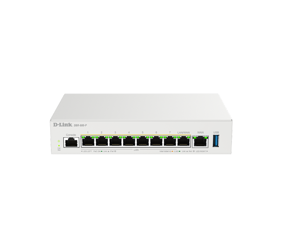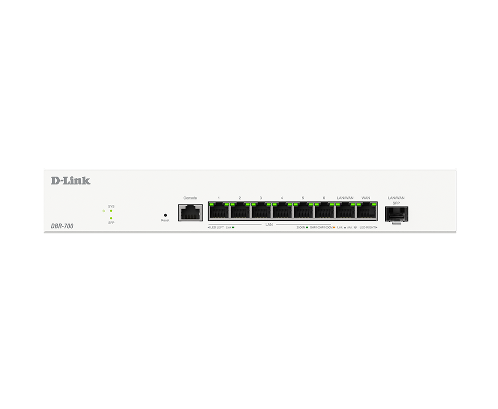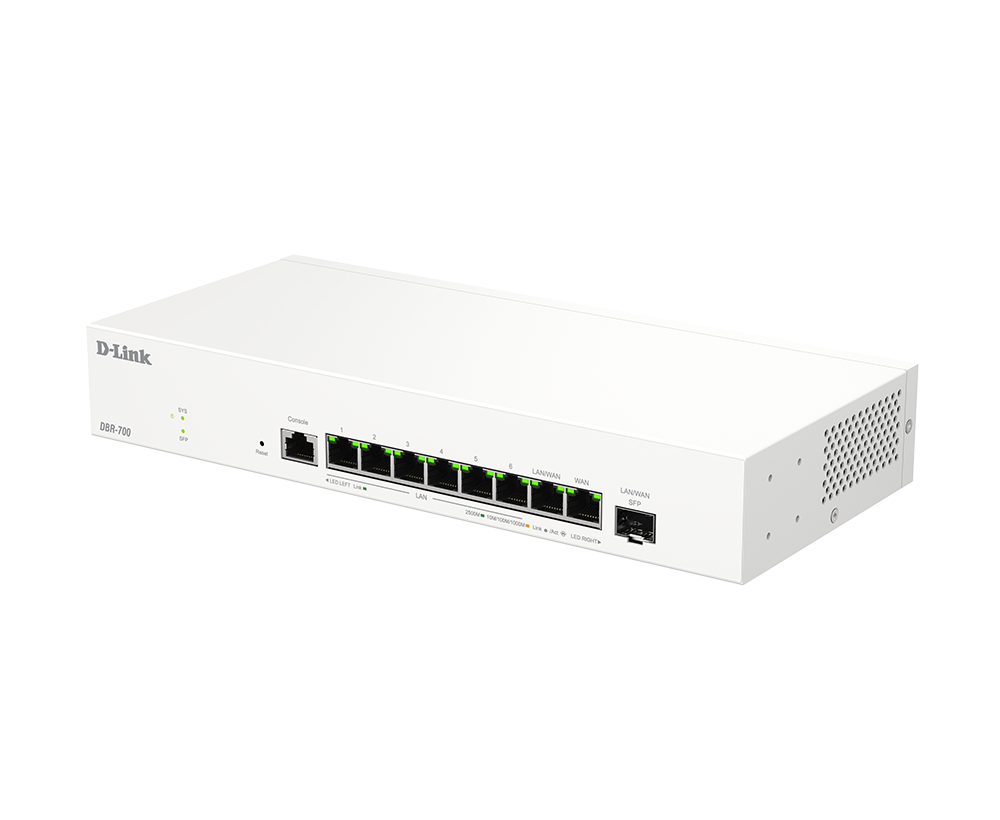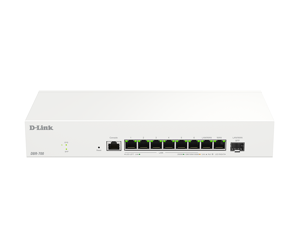 Der DBR-700 ist ein leistungsstarker Router mit 2,5-Gigabit-Schnittstellen, einschließlich SFP-Ports, die eine flexible und stabile kabelgebundene Konnektivität bieten, insbesondere für die Übertragung über große Entfernungen. Ideal für Anwendungen im SMB. Die Multi-WAN-Funktionalität gewährleistet unterbrechungsfreies Netzwerk, indem automatisch auf eine Backup-WAN-Verbindung und einen Loadsharing-Internetzugang gewechselt wird. Mit einer leistungsstarken Firewall und der Unterstützung von IPsec-VPN-Tunneln ist der Fernzugriff immer sicher und verschlüsselt. Ein verbessertes AP-Management vereinfacht die zentrale Kontrolle mehrerer Access Points und macht den DBR-700 zu einer ausgezeichneten Wahl für Unternehmen, die ein zuverlässiges, sicheres und schnelles Netzwerk suchen.