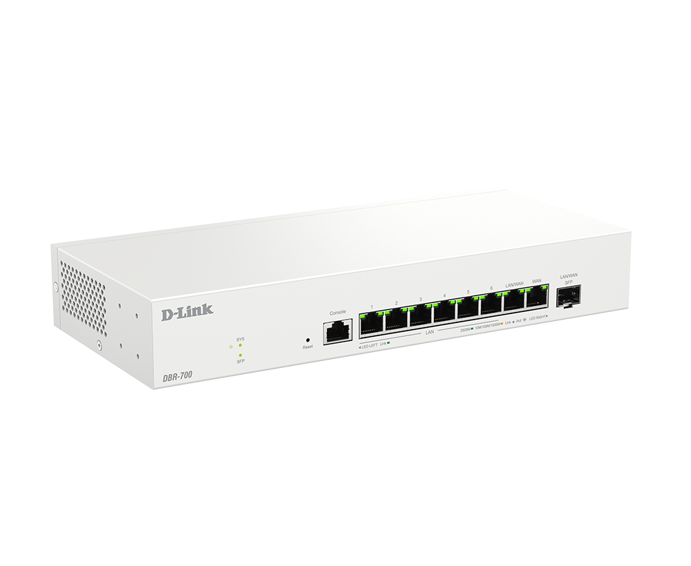 Der DBR-700 verfügt über eine 2,5-G-Schnittstelle, die eine höhere Bandbreite für schnellere Dateiübertragung und verzögerungsfreies, hochwertiges 4K/8K-Video-Streaming bietet und so die tägliche Produktivität durch eine stabilere und zuverlässigere Konnektivität steigert. Der SFP-Port (Small Form-Factor Pluggable) ermöglicht die Datenübertragung über große Distanzen und bietet so mehr Flexibilität und Skalierbarkeit beim Netzwerkdesign. Mit dem Glasfaseranschluss können Unternehmen ihr Netzwerk problemlos ohne Zonenbeschränkungen skalieren.