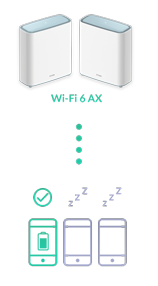 Increase your network capacity by up to 4x with MU-MIMO, OFDMA, and BSS Coloring to handle more devices on the network with incredible efficiency. Now you can connect up to 128 devices* to your smart home without worrying about your network.