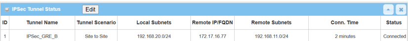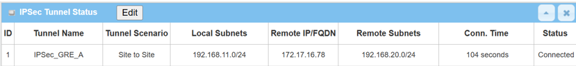 The IPsec Tunnel Status table will display the tunnel information.