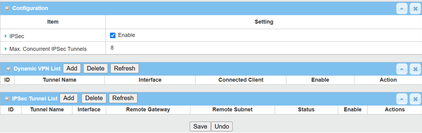 1. Enable IPsec setting: Go to Security > VPN > IPsec tab
