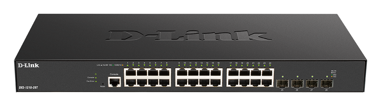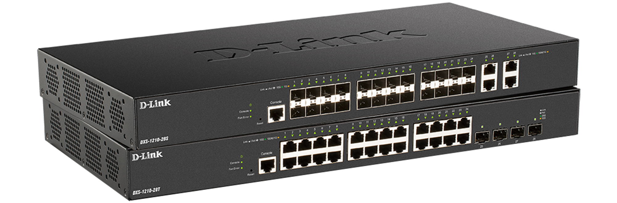 - 25GbE SFP28 ports1 (DXS-1210-28T only)