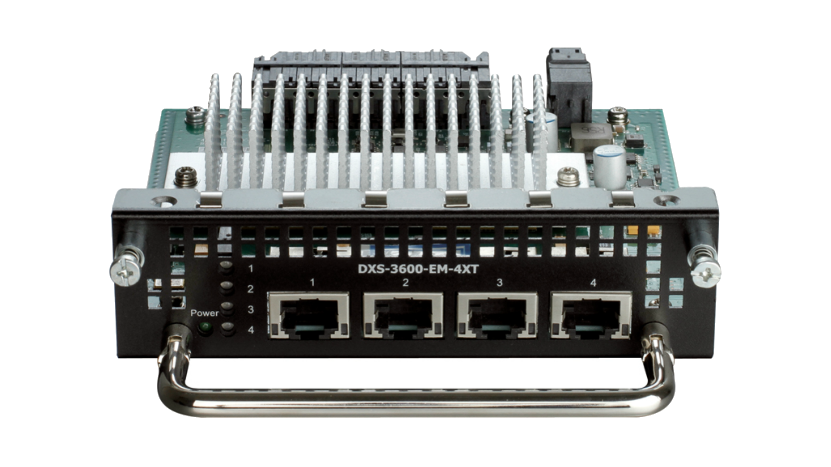 - DXS-3600-EM-4XT: 4-Port 10GBase-T Module for DXS-3600 Series switches