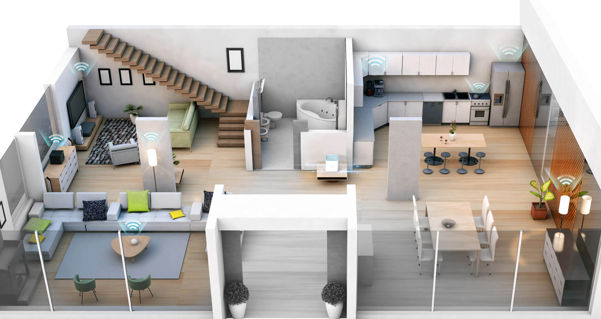 Wi-Fi 6 features bi-directional MU-MIMO technology to handle more simultaneous users at faster data rates, and beamforming capability to greatly extend Wi-Fi coverage area.