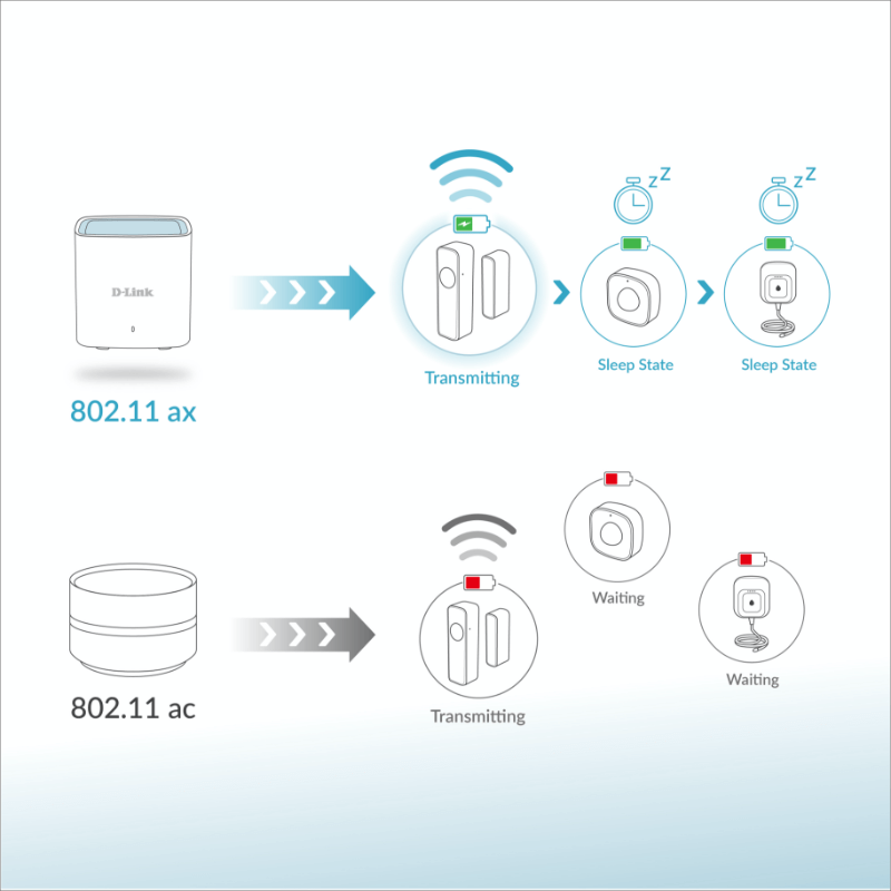Target Wake Time (TWT) technology schedules connected devices to be awake or asleep during designated time periods. This not only saves device battery life, but also reduces network congestion.