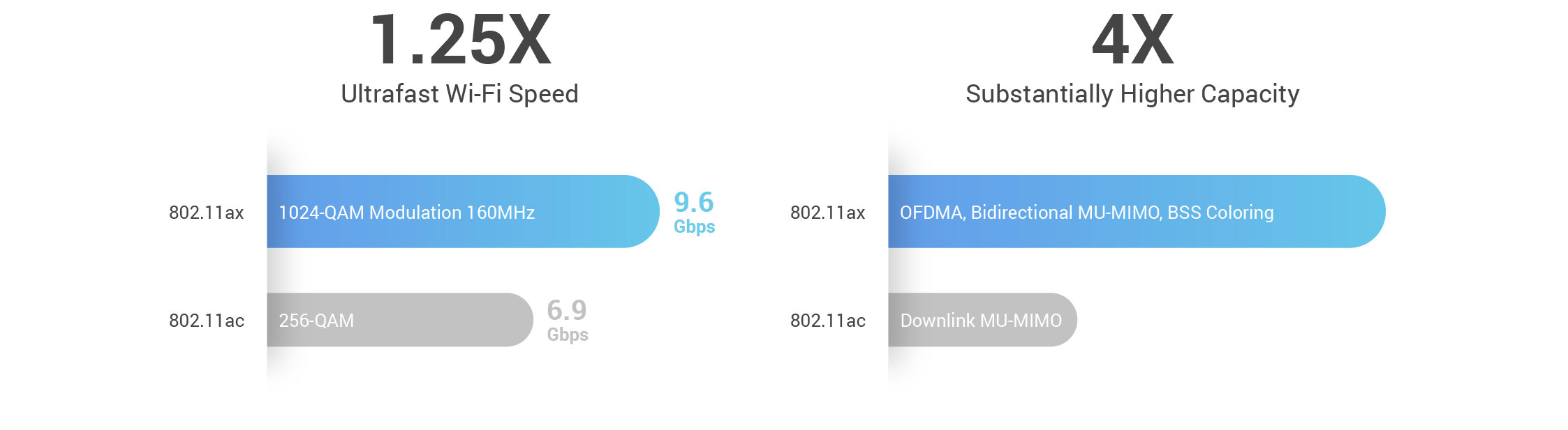 | 2.4 GHz Up to 574 Mbps 5 GHz Up to 1201 Mbps |