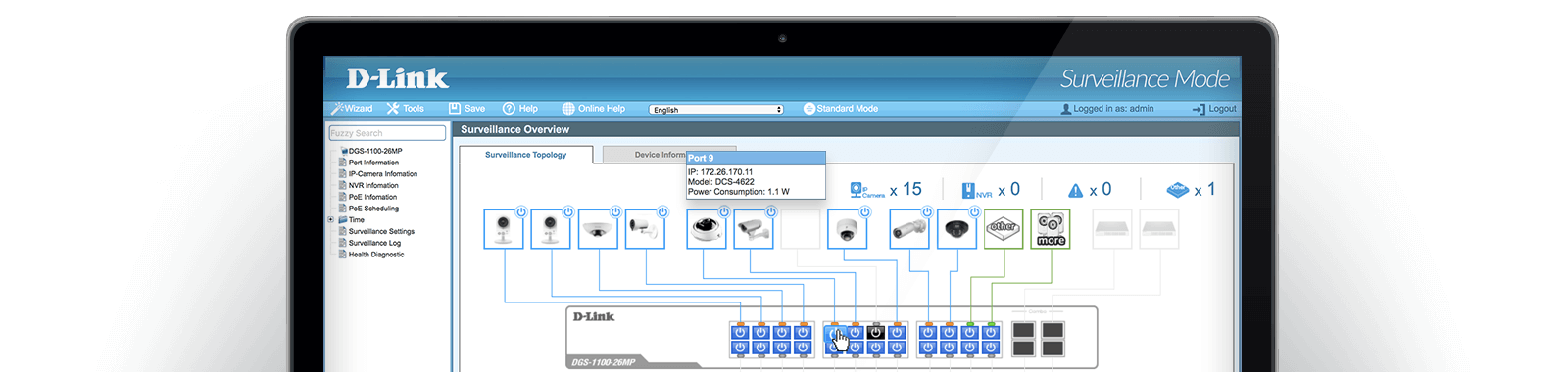 Sélectionnez le mode de surveillance dans l'interface Web pour tirer parti des fonctions de surveillance faciles à utiliser qui vous permettent également de gérer votre réseau de surveillance sans effort. Il détecte automatiquement vos périphériques de sécurité et les segmentent en un VLAN de surveillance automatique dédié pour gérer le trafic de vidéosurveillance de manière sécurisée et efficace.