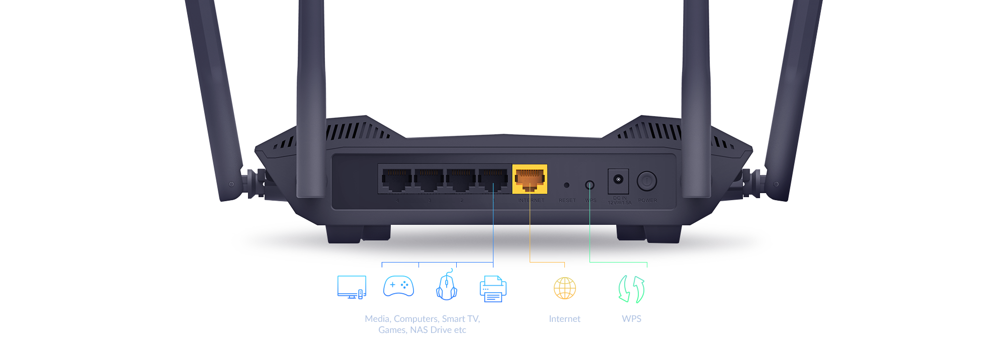 4 εξωτερικές κεραίες υψηλής απόδοσης και οι ενσωματωμένοι ενισχυτές ισχύος συνεργάζονται για τη δημιουργία ενός ευρύτερου και πιο αξιόπιστου σήματος Wi-Fi για πρόσβαση σε περισσότερα δωμάτια και κάλυψη σε όλο το σπίτι σας.2.
