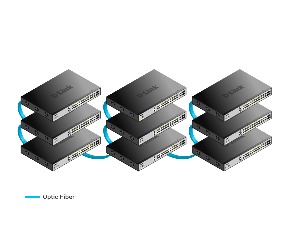 The switches support high bandwidth, long distance stacking, with physical stacking of up to 9 units over fiber, increasing available Gigabit ports on demand. This makes them ideal for network administrators who demand agile expansion functionality without having to sacrifice network reliability.