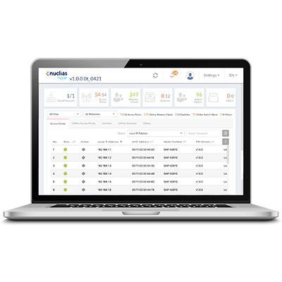 Nuclias Connect is a free network management solution. It can be used either as an on-premise software management platform, with an optional hardware controller, or as a cloud solution hosted on a private cloud service for remote access.