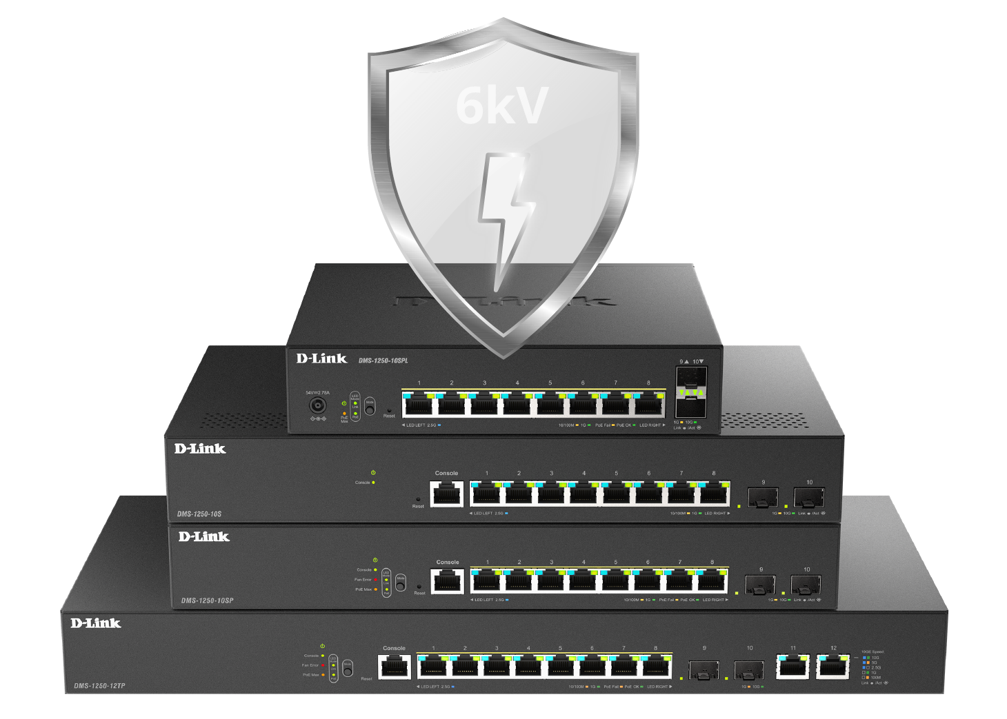The DMS-1250 Series switches offer enhanced 6kV surge protection on all 2.5-Gigabit Ethernet access ports, ensuring that your network remains resilient and that your devices stay safe from electrical surges.
