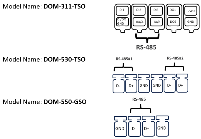 Use D+ and D- to connect DOM series products based on IoT sensors (temperature/humidity)