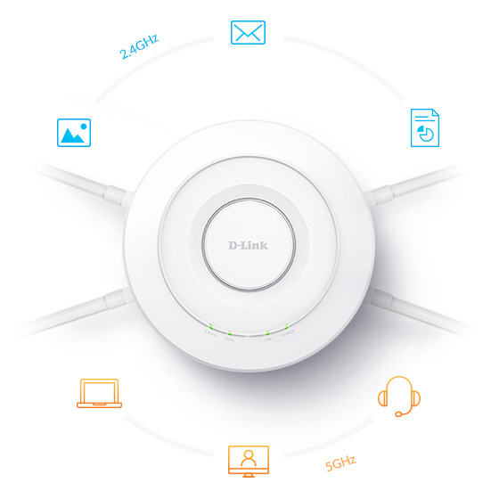 La technologie 4 x 4 MU-MIMO du DWL-8620APE exploite pleinement tous les flux pour servir plus de clients sans fil et améliorer nettement les performances sans fil.