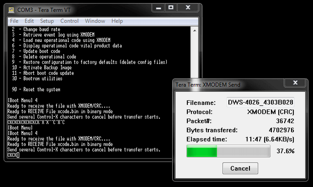 [Boot Menu] 4 (Enter 4 for: Load new operation code using XMODEM)