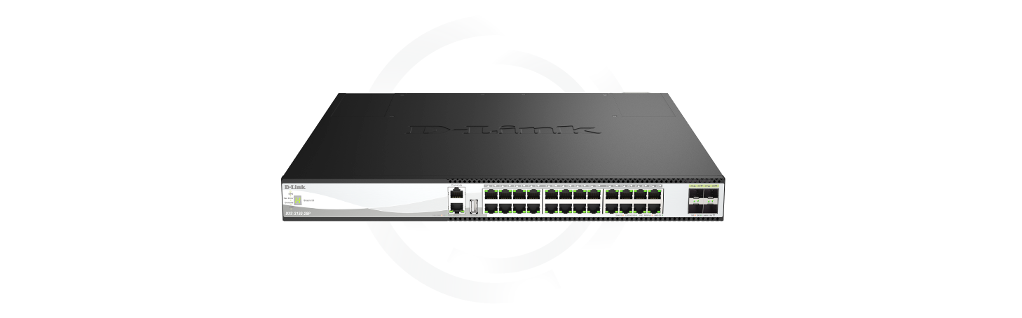 The DXS-3130-28P supports 802.3af/at/bt PoE standards, delivering up to 60 W per port with Perpetual and Fast PoE.